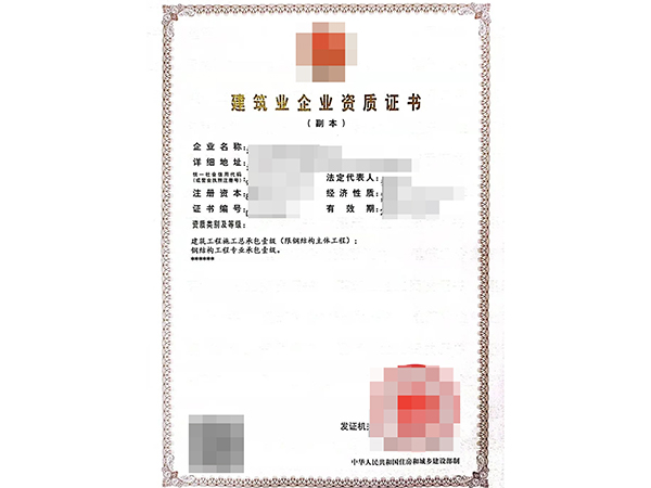 钢结构工程专业承包二级资质证书
