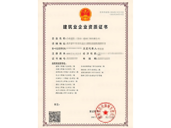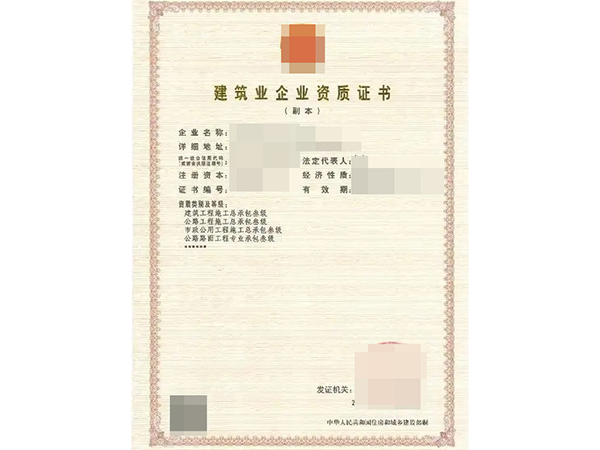 建筑工程施工总承包二级证书