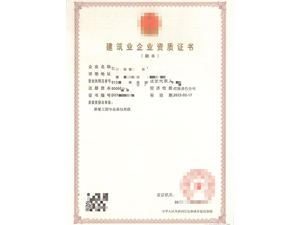 桥梁工程专业承包二级证书